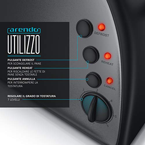 Arendo Tostapane automatico a fessura lunga Funzione antigelo Alloggiamento termoisolante Rialzo per panini rimovibile 1500 W 7 livelli Cassetto raccoglibriciole estraibile Acciaio inossidabile Cool Grey Design