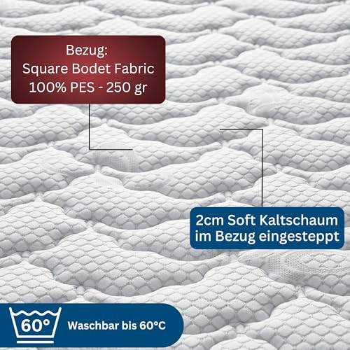 Arensberger Deluxe RG 45 - Materasso a molle insacchettate a 9 zone, 140 x 200 cm, altezza 30 cm