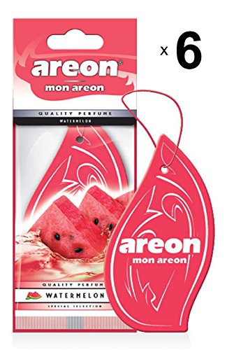 AREON Mon Deodorante Auto Anguria Rosso Dolce Pendente Specchietto Retrovisore Cartoni 2D Set (Pack x 6)