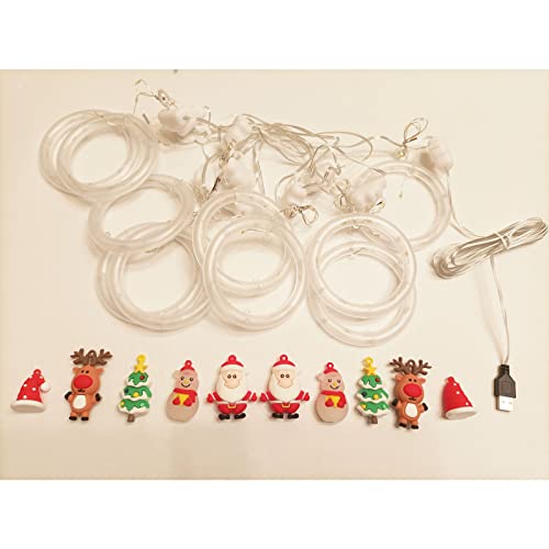 Arespark LED Luci di Natale, 3m Tenda Luminosa Catena Interno Esterno, 2,7m USB Cavo Luci Stringa con Cappello da Pupazzo di Neve Alce di Babbo Natale con Albero di Natale, per Vetrina Finestre Scala