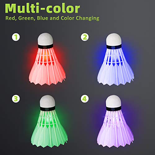 Badminton illuminato: ci sono 8 badminton in totale, con luci a LED (rosse, verdi, bianche e viola), le luci a LED sono sulla testa della palla, permettendoti di giocare a badminton di notte.