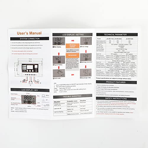 ☀【Facile da usare】: questo controller è un intelligente regolatore di carica solare e scarica multifunzione. Il display LCD mostra chiaramente lo stato e i dati ed è facile da impostare e utilizzare. Adatto per casa, negozio, industria, ecc.