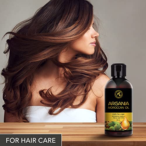 Olio di Argan 250ml - Puro e Naturale al 100% - Olio di Argania Spinosa Kernel - Marocco - Miglior Olio per Capelli - Buono per la Pelle - Viso - Cura del Corpo - Olio Argan