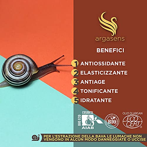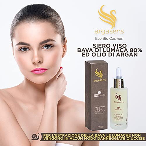 Argasens Siero Viso alla Bava di Lumaca, con Olio di Argan, Acido Ialuronico puro, Aloe Vera, Collagene e Vitamina E, tonico detergente e idratante antirughe, 30ml
