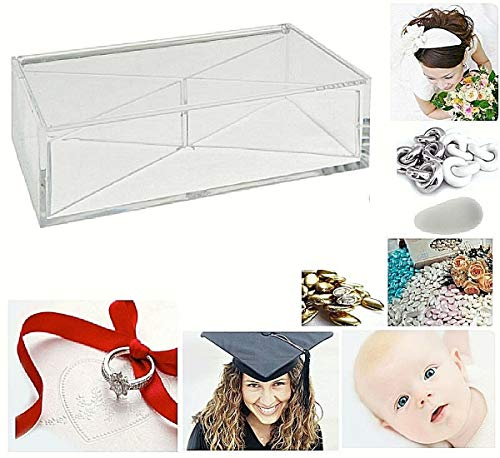 ARTE DEGLI ARGENTI Scatola in PLEXIGLASS Trasparente Cm.16x10x5 H con 4 Scomparti-DIVISORI Interni ASPORTABILI e Coperchio per BOMBONIERE Confetti CONFETTATA SEGNAPOSTO