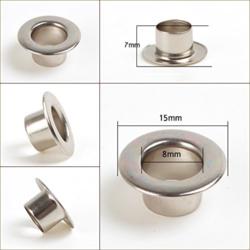 Argento antico in ottone bronzo nero 100 set 8/10 mm occhielli occhiello W/rondella Fit spessore artigianale in pelle, Black/Silver, Silver 8mm (100 Sets)