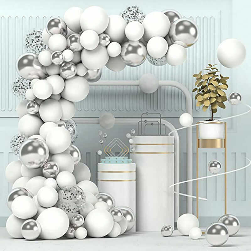 Palloncini nuziali NUOVA FORNITURA PER FESTE PREMIUM: BELLISSIME DECORAZIONI: perfette per feste di Halloween, baby shower, matrimoni, feste, prodotti da forno, esposizioni di cibo, lauree, vacanze, feste e intrattenere gli ospiti, per molte occasioni felici. Perfetto per servire cupcakes, muffin, pasticcini, dessert, antipasti, frutta, brownies e dolcetti per le feste! e addio al nubilato. Palloncini di fidanzamento: non gonfiare oltre il 90% per evitare di scoppiare. Quando il palloncino è pieno di elio e non galleggia, puoi rimuovere una piccola quantità di coriandoli per risparmiare peso. La confezione include: 1 * set di palloncini (bianco argento) Le dimensioni possono variare a causa del manuale Le misure variano leggermente A causa dei diversi schermi di visualizzazione, potrebbero esserci alcune differenze tra il colore e l'oggetto reale. grazie