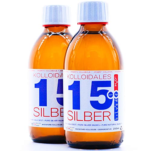 Argento colloidale 600ml 15ppm ● 2 x 250ml 15ppm argento colloidale + spray 100ml 15ppm ● Fresco direttamente dal produttore ● Made in Germany