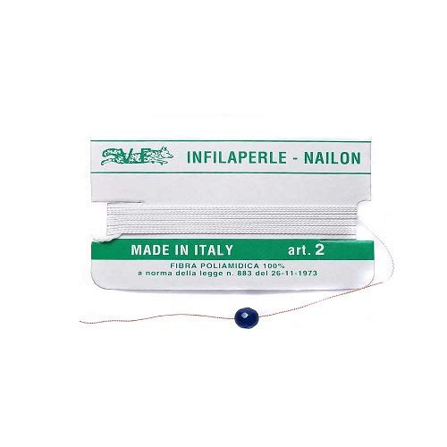 Argento e dintorni Filo infilaperle con ago Colore Bianco in Nylon per collane bracciali nailon Varie Misure (2) (0,4 mm)