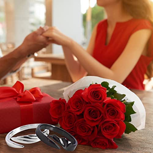 S925 Argento Donne Anelli, Anello Aperto Regolabile Anello di Coppia, Anello con Ali di Angelo Diavolo Gioielli Regalo per Donna Uomini Regali di San Valentino per Lanniversario degli Innamorati