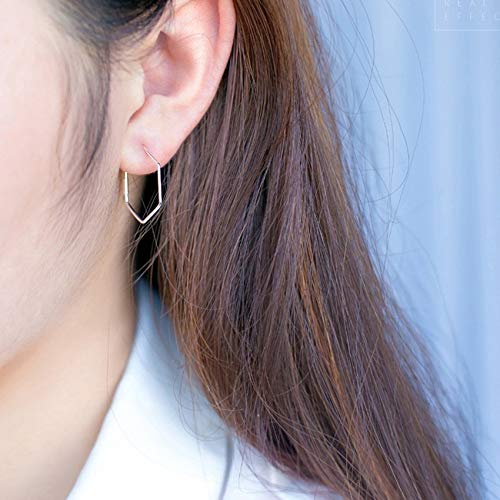 TJZY Argento S925 Esagerazione Orecchino,Geometria Esagono Orecchini,Semplice e Moderno Diamante Dangler,Apertura e Chiusura Moda Grande Anello per Le Orecchie Orecchino della Vite prigioniera Donne