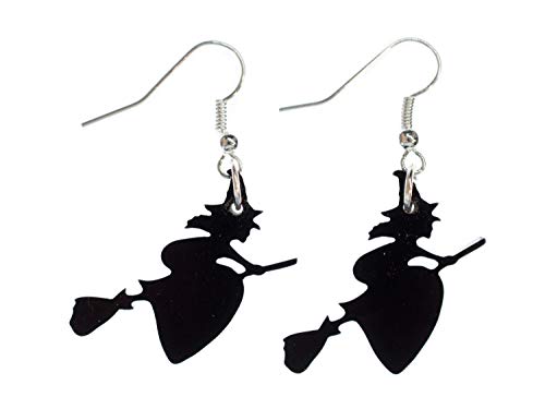 ++ . argento spaventoso strega Orecchini Una strega sulla scopa fatta di vetro acrilico nero laserato pendente materiale ganci e occhielli in acrilico lunghezza: del ciondolo (senza gancio):. 30 millimetro contenuto: 1 paio di orecchini QUALITA: lavoro artigianale fatto con grande passione dal nostro laboratorio di Berlino ++ VANTAGGI: Anche per chi soffre di allergie - consegna veloce dalla Germania ++ REGALI FELICI: Miniblings fanno regali perfetti per i tuoi, per gli alunni, onomastico, sup