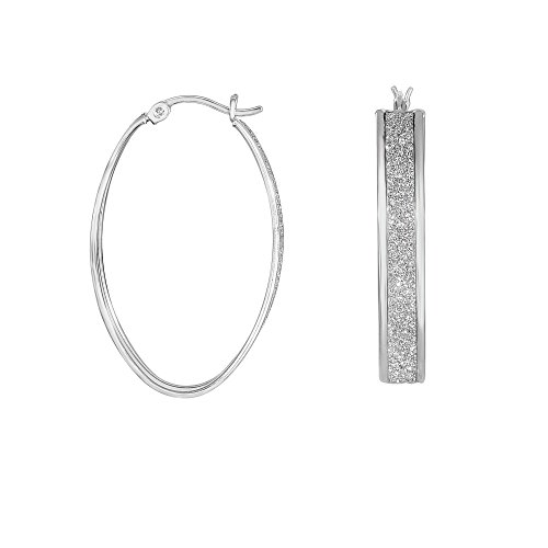 Argento con rodio finitura 5.6 x 20 x 33 MM lucido + Diamo ND taglio brillante ovale orecchini a cerchio