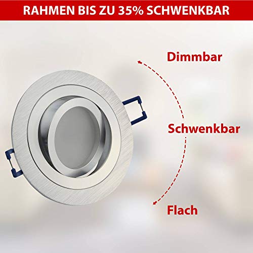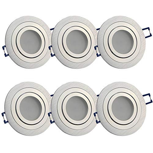 6x set argento - rotondo 6,5 watt bianco freddo di faretti LED da incasso a LED da 230V dimmerabili e superpiatti - orientabili, foro da 80mm, in alluminio - Spot Soffitti - faretti da