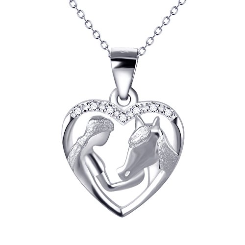 YFN Argento sterlina Ragazza e Cavallo Pony Cuore Cubic Zirconia Ciondolo Collana