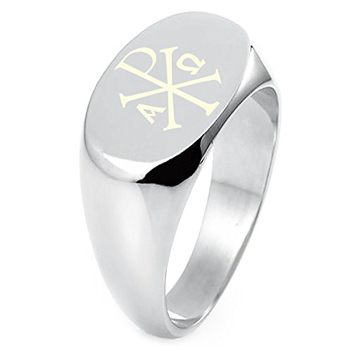 Argento Sterling Chi Rho Alpha Omega Simbolo Inciso Lucido Piatto Ovale Piatto Anello, Misura 14.5