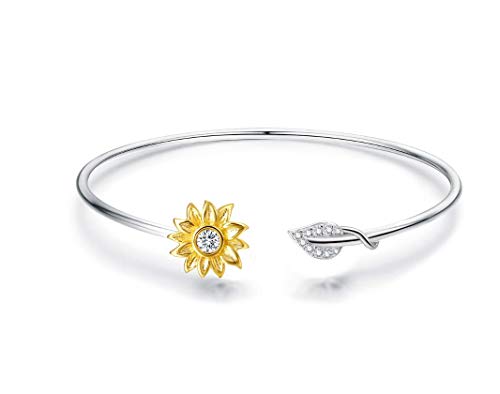 GDDX Argento sterling Girasole Bracciali Polsino Regolabile Braccialetti Bracciali Zirconia cubica Gioielli Regali per le donne