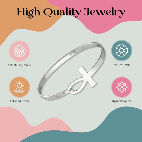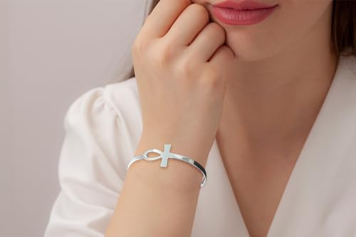 Argento sterling lateralmente egiziano Ankh chiave della vita del braccialetto