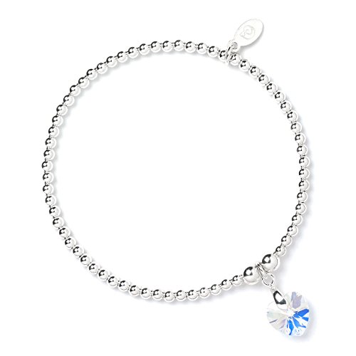 Argento sterling 'Rice & noodle' Ball Bead bracciale con cristalli Swarovski Elements cristallo AB cuore