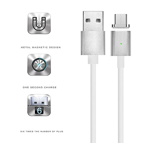 Argento Super Forte Cavo micro USB con calamita. Connessione magnetica per telefono cellulare Android- Samsung Galaxy S7 Edge S6 S5 Huawei Mate 7 etc, 2x adattatore + 2 x cavo USB CTX-S-X2-BB16