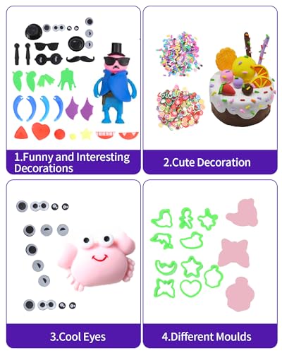 Kit di argilla ultraleggera: il nostro kit di accessori per l'argilla è uno scrigno di idee! Questo kit contiene 60 argille colorate, istruzioni per stimolare la vostra immaginazione, 14 strumenti essenziali, 10 stampi versatili, 50 accessori stravaganti e 2 confezioni di adorabili decorazioni per caramelle.