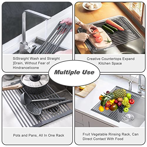 Lo scolapiatti arrotolabile è dotato di 18 tubi in acciaio inossidabile massiccio a radice, con silicone sull'esterno e su entrambe le estremità, dimensioni: 42.5 * 32 cm adatto per la maggior parte delle famiglie, 1108 g, grigio.