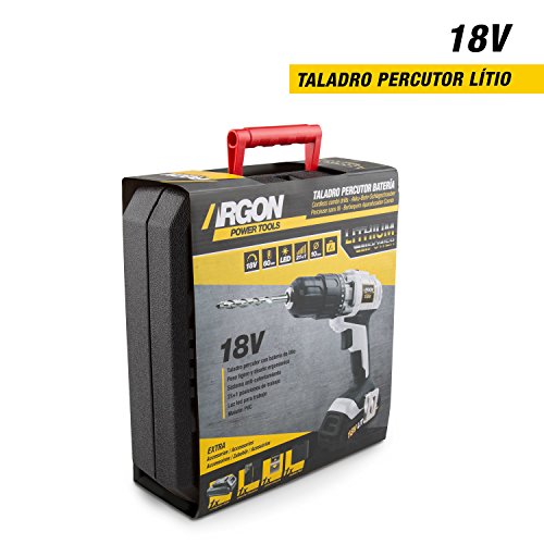 Argon Power Tools 46234 - Trapano percussore con batteria al litio, 18 V, 0-1500 giri/min, coppia a 21 posizioni, caricamento rapido, luce LED, colore: bianco