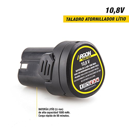 Argon Power Tools 46243 - Trapano avvitatore con batteria al litio, 10,8 V, 0-1350 giri/min, coppia a 17 posizioni, caricamento rapido, luce LED, colore: bianco