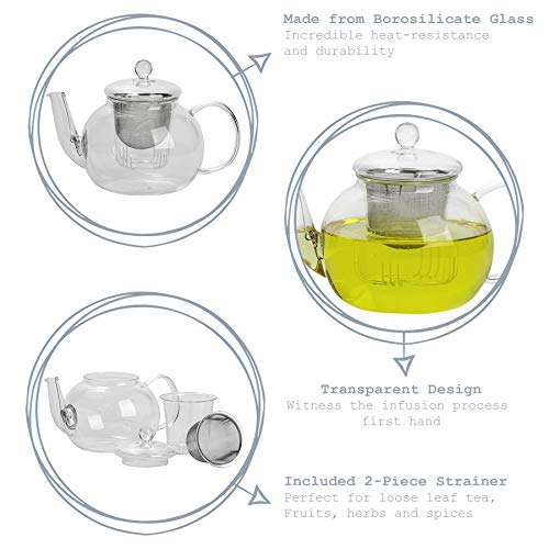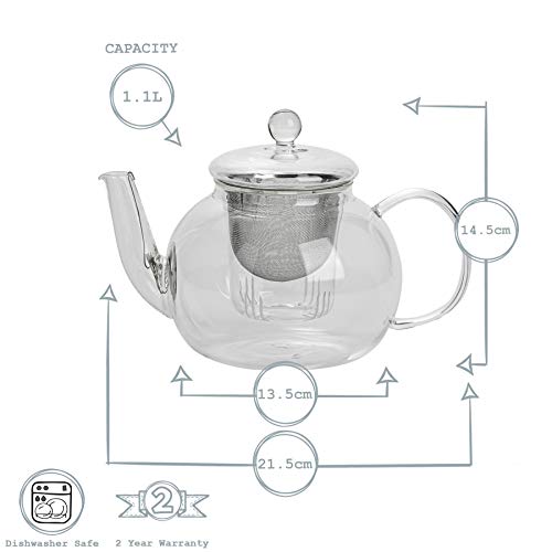 Argon Tableware Ampia teiera 3 in 1 - in Vetro per tè in bustina, Sfuso e in Polvere