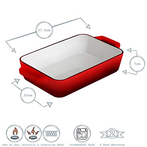 Argon Tableware Pirofila Rettangolare - per arrosto, Lasagne e stufati - in ghisa - Rosso