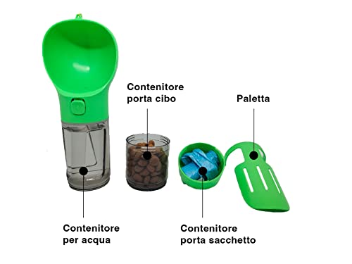 ArgoPets - Borraccia per Cani Portatile Porta Crocchette per Cani e Gatti Bottiglietta porta Acqua per Cani e Gatti Contenitore Sacchetti Igienici Borraccia con ciotola integrata per cani