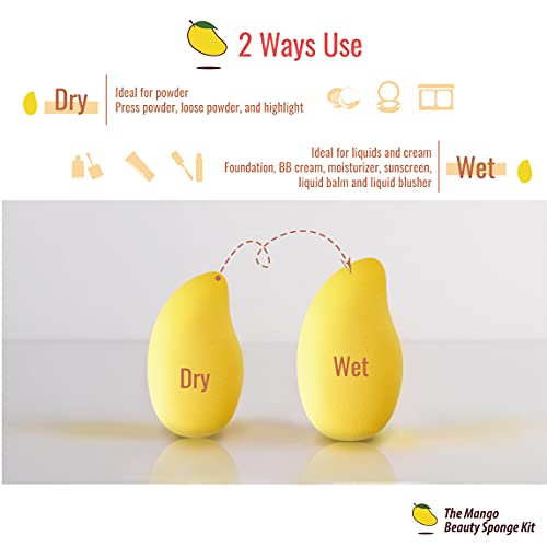 ARIANA The Mango Beauty Sponge Kit - Spugna di mango gialla 2 pezzi + spugna di mango verde 1 pezzo frullatore di bellezza a forma di mango/spugna cosmetica