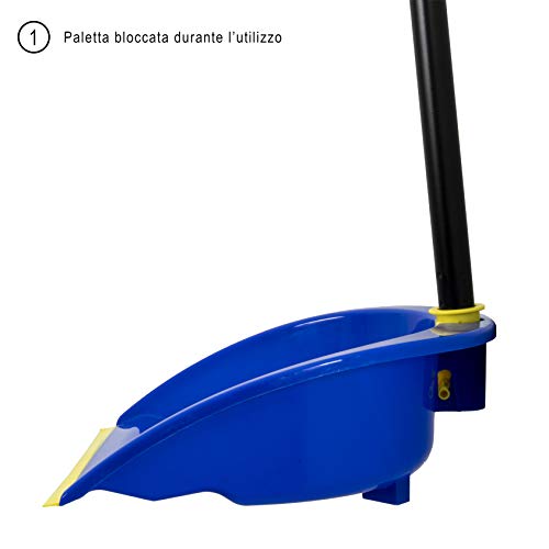 Alzaimmondizia pieghevole con manico, paletta in plastica riciclata e manico in ferro zincato