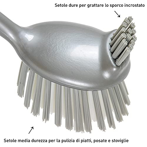 Scopino lavapiatti con mini spazzola sul dorso e manico in gomma ergonomico