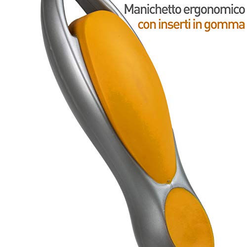 Manico ergonomico con inserti in gomma per una presa comoda e sicura, anche indossando guarnti o con le mani bagnate