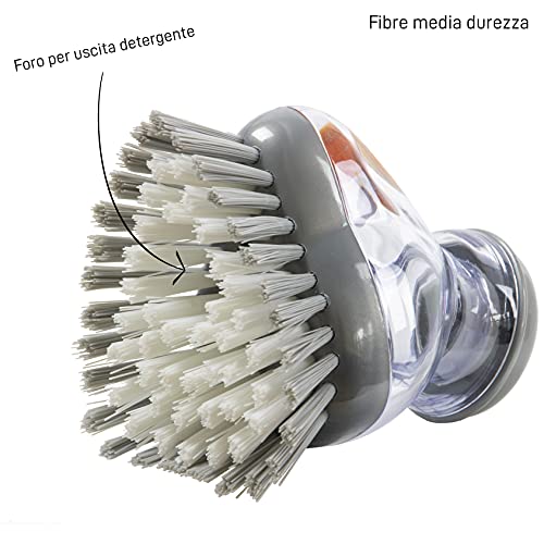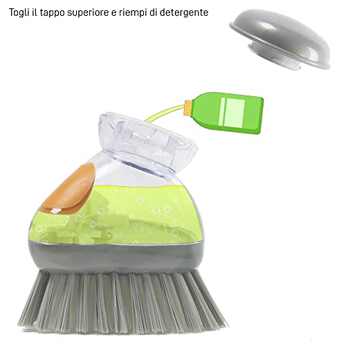 Spazzolino lavapiatti con dosatore di detergente. Pratico da usare, comodissimo per lavare piatti e stoviglie
