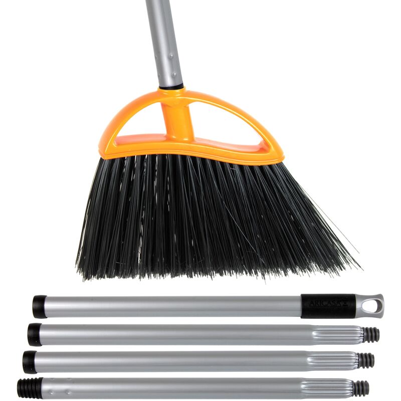 Scopa angolare con profilo ad arco, dimensioni medie, ideale per le pulizie in casa e in ufficio. Design moderno ed ergonomico, articolo realizzato con materiali di alta qualità. Fibre durezza media, utilizzabili su qualunque superficie. Fornita con manico componibile 4 pezzi, 130 cm, diametro 21 mm, filetto italiano. Ampiezza scopa: 27 cm, altezza setole: 11 cm circa. Colore: arancione e nero. Articolo della linea SilverClass di Aricasa Home Prodcuts: visita il nostro Amazon Store per scoprire tutti i prodotti!