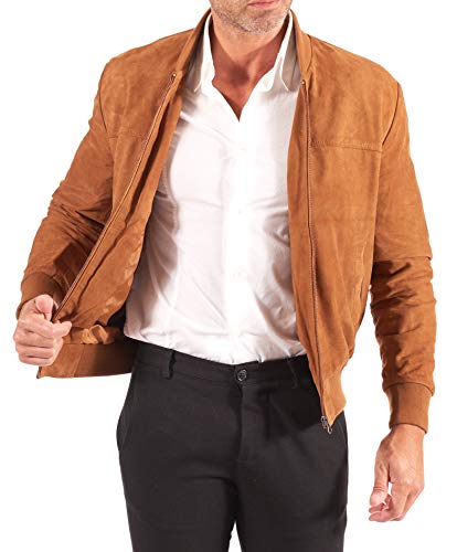 D'Arienzo Bomber Camoscio Cuoio Renna Uomo in Pelle Scamosciata Giacca Primavera Giubbotto Giubbino Vera Pelle Made in Italy Alex