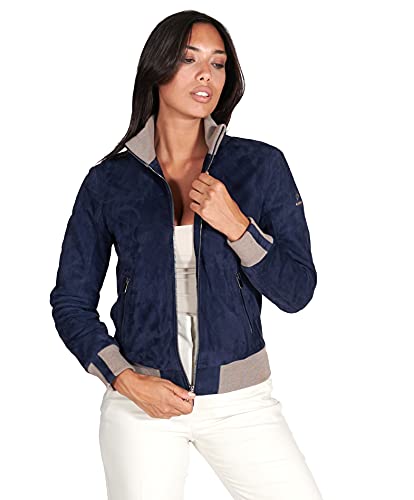 D'Arienzo Bomber in Pelle Scamosciata Blu Donna Giacca Bicolor Giubbotto Moto Vera Pelle Made in Italy G155 XXS/Blu