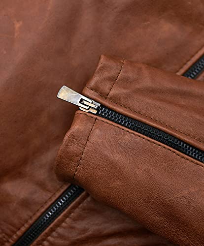 D'Arienzo Chiodo in Pelle Donna Cuoio Vintage Giacca Biker Giubbotto Moto Vera Pelle Made in Italy KBC L/Cuoio