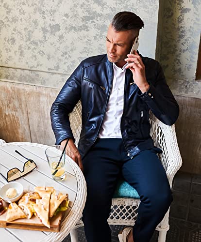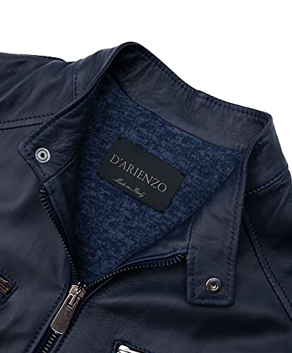 D'Arienzo Giacca Pelle Blu Uomo Giubbotto Giubbino Moto Vera Pelle Made in Italy Hamilton 60/Blu