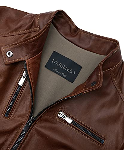 D'Arienzo Giacca in Pelle Naturale Donna Cuoio Giubbotto Biker Vintage Giubbino Moto Vera Pelle Made in Italy Giulia M/Cuoio