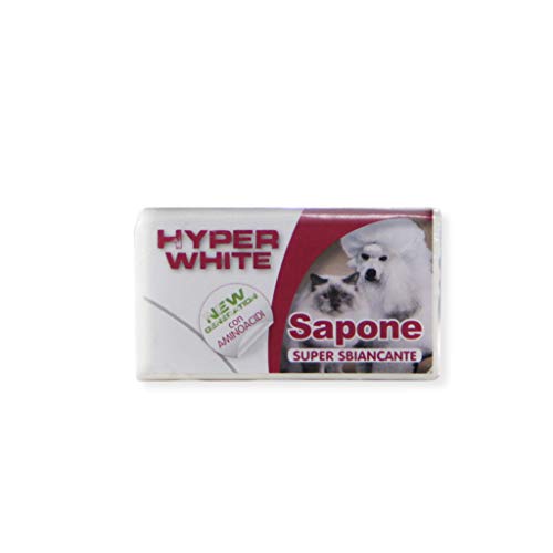 Hyper white è un sapone vegetale ad effetto sbiancante formulato con materie prime naturali di alta qualità, aiuta ad eliminare macchie e aloni gialli del pelo del cane e del gatto