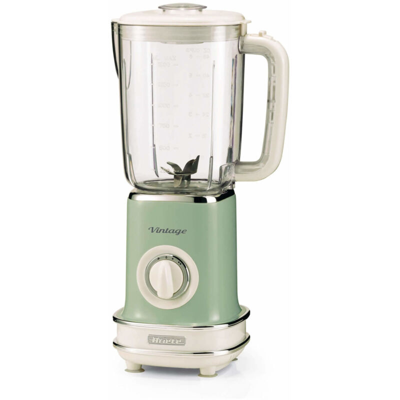 Il frullatore della linea Vintage di Ariete è perfetto per preparare frullati, smoothie e granite. Grazie alle 6 lame in Acciaio Inox frulla e mixa gli ingredienti ed è in grado di tritare anche il ghiaccio con la funzione Pulse. Le performance si uniscono al design unico dei prodotti Vintage di Ariete fatto di colori pastello, linee morbide ed eleganti e un pizzico di genialità Ariete: il bicchiere del frullatore infatti può essere capovolto direttamente sul corpo del prodotto, così da diventare compatto e poter essere riposto facilmente in qualsiasi scaffale della cucina. Ariete 568/1, Frullatore salvaspazio Vintage, 500 W, Verde. Capacità ciotola: 1,5 L. Tipo: Frullatore da tavolo, Colore del prodotto: Verde. Materiale lama: Stainless steel. Potenza: 500 W. Larghezza: 185 mm, Profondità: 140 mm, Altezza: 380 mm Prestazione Capacità ciotola 1,5 L Numero di velocità 2 Funzione pulsante Sì Tritaghiaccio Sì Velocità variabile Sì Design Contenitore rimovibile Sì Tipo Frullatore da