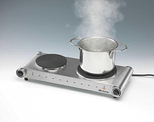 Ariete 994 Fornello Elettrico Doppio, Doppia Piastra di Cottura in Ghisa, 2500W, 53X22.5X9Cm, Argento