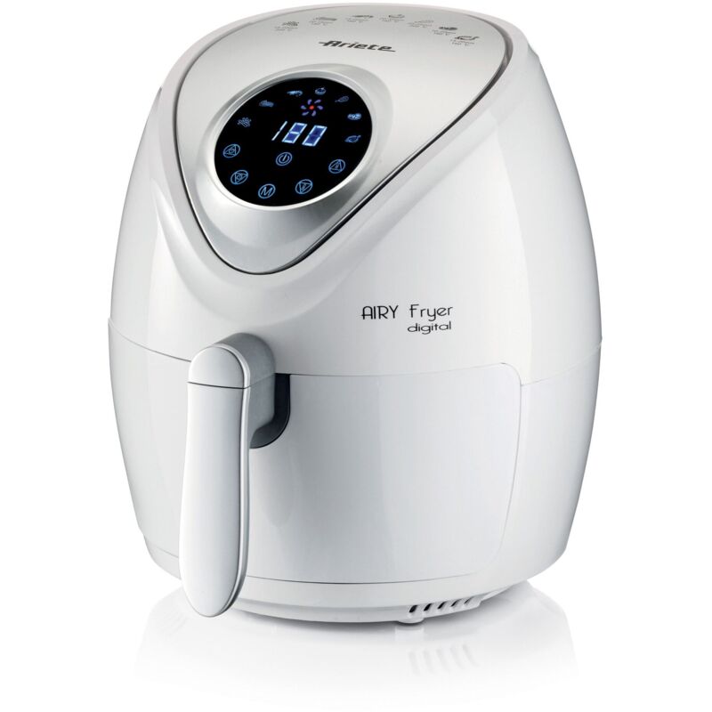 Airy Fryer Digitale una friggitrice ad aria digitale che permette di ottenere cibi fritti e gustosi grazie alla cottura ad aria calda rapida e uniforme allinterno del cestello. Con il display LCD touch screen possibile scegliere fra ben 7 programmi preimpostati, a seconda della pietanza inserita, oppure utilizzare limpostazione manuale.Airy Fryer Digital frigge i nostri alimenti preferiti con l80% di grassi in meno e con un solo cucchiaio di olio!Ideale per friggere prodotti surgelati e impanati. La tecnologia di frittura ad aria non indicata per pastelle liquide.Come funziona? La circolazione a 360 dellaria calda nel cestello cuoce gli alimenti in maniera uniforme. Gusterai sapori e profumi della frittura tradizionale con un solo cucchiaio di olioCosa posso friggere? Oltre a croccanti patatine puoi preparare gustose crocchette di patate, carne, pesce e tanti altri alimenti impanati, freschi o surgelatiSfoglia il ricettario: divertiti a provare le gustose ricette dolci e salate che