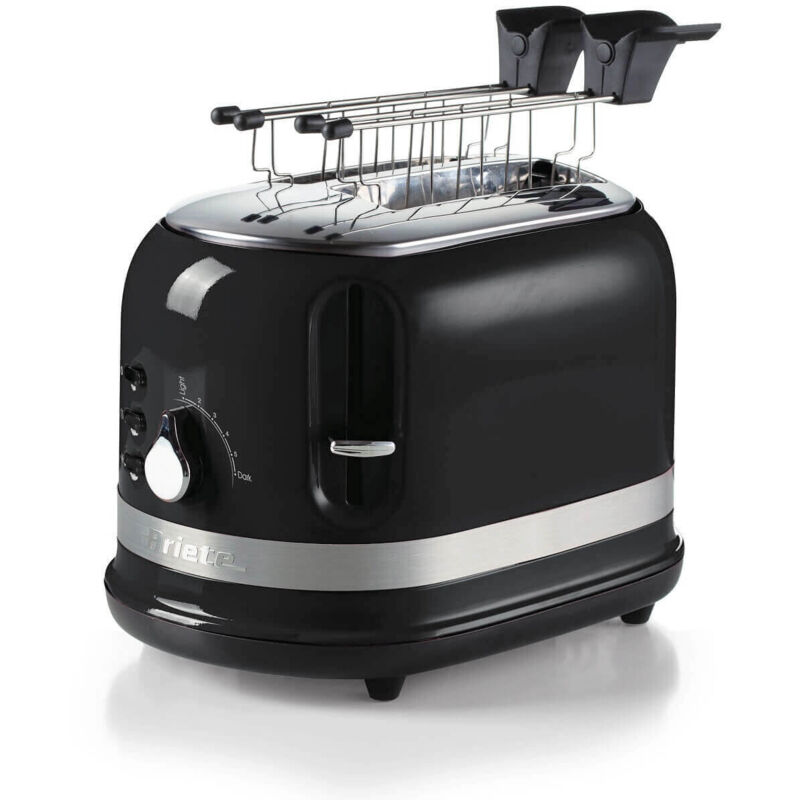 Il tostapane Moderna di Ariete è dotato di pinze per tostare perfettamente pane o sandwich farciti e può essere utilizzato anche senza pinze grazie all'espulsione automatica delle fette. È possibile tostare 2 fette di pane contemporaneamente e selezionare fino 6 diversi livelli di doratura delle fette, in modo da scegliere il grado di croccantezza che preferisci per il tuo pane tostato, inoltre è dotato di 3 funzioni: cottura, riscaldamento e scongelamento. Il tostapane Moderna unisce la funzionalità al design unico della linea Moderna di Ariete. Scopri tutti i prodotti della collezione e arreda la tua cucina partendo dai piccoli elettrodomestici!