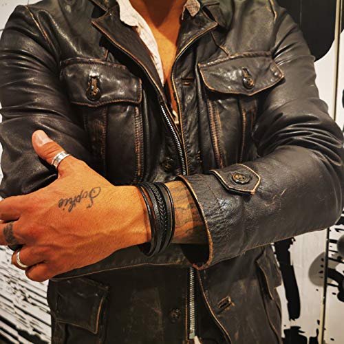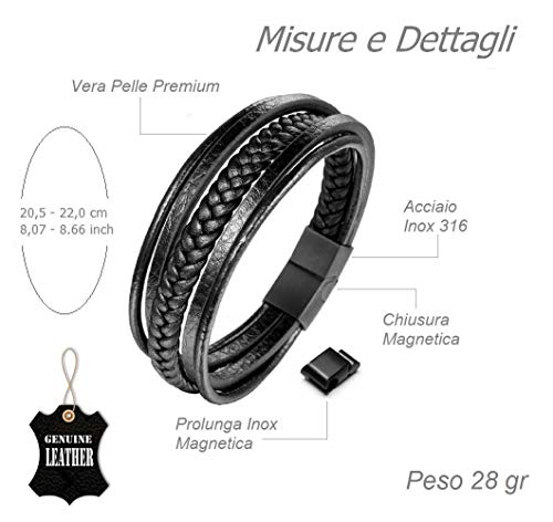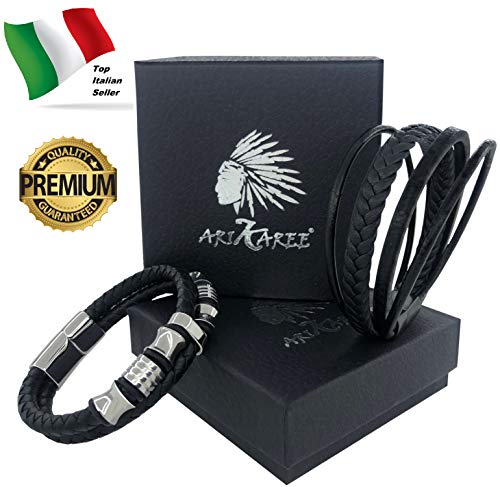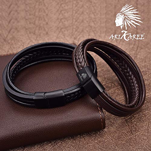 Arikaree Bracciale Uomo Cuoio Pelle Premium Chiusura Regolabile Nero con Prolunga Magnetica Acciaio Inossidabile Cuoio Intrecciato Eleganti Braccialetti Chiusure Magnetiche in Confezione Idea Regalo