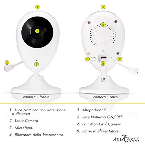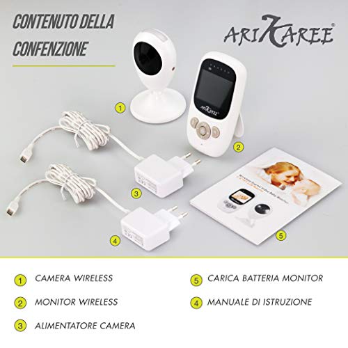 Arikaree Baby Monitor Video Telecamera Sorveglianza Neonato Wifi Con Schermo Colori 2,4 Pollici Luce Notturna Infrarossi Visione Temperatura Cameretta Videocamera Di Sicurezza Bambini Walkie Talkie