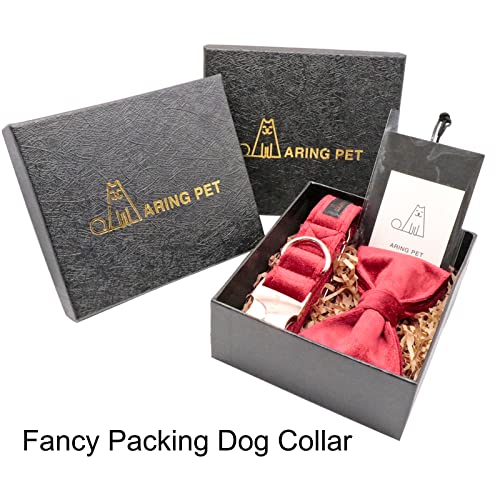 ARING PET Collare per cani in velluto, con papillon rosso, morbido, comodo, regolabile, con fiocco per cani di piccola taglia media